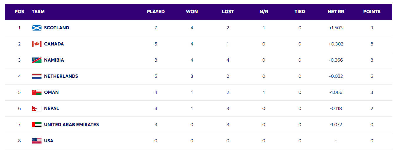 यहां देखें प्वाइंट टेबल (ICC Men's Cricket World Cup League 2 Points Table)